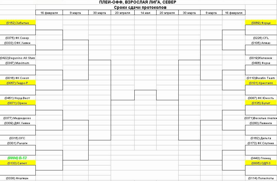 Зона Север. 1/32 Плей Офф. (0004) B-13 2 - 5 (0133) Салют (767-37-41 – Владислав, 8-903-596-14-87 – Рустем).